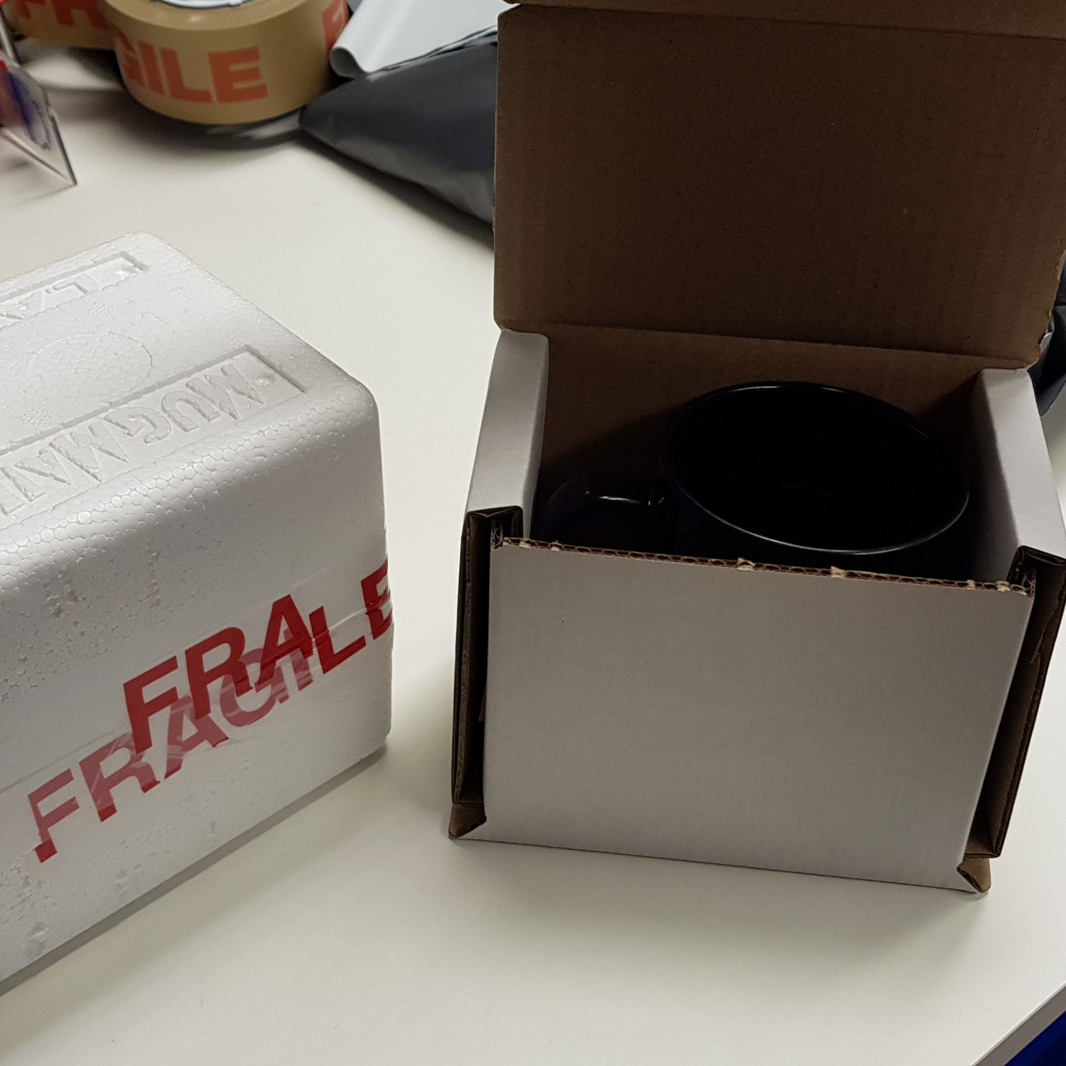 Polystyrene packaging has been replaced with recycled carboard.